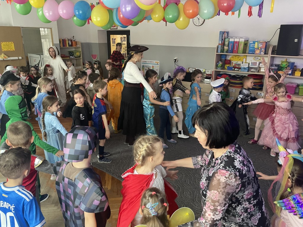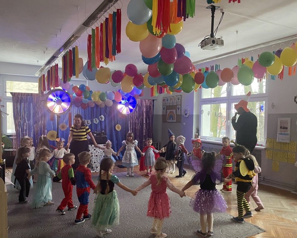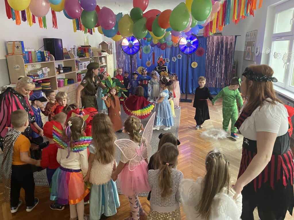 2 lutego w poniedziałek w naszym przedszkolu odbył się bal karnawałowy. Bal karnawałowy dla przedszkolaków to dzień niezwykły, często wyczekiwany przez wiele tygodni. Jest to zdecydowanie atrakcyjne wydarzenie, bardzo lubiane przez dzieci, które dostarcza im wielu przeżyć i radości. Nauczycielki przedszkola dołożyły wszelkich starań by wystrój „sali balowej" wprowadził dzieci w radosny bajkowy nastrój oraz zachęcał do wesołej zabawy. Tego dnia już od rana w przedszkolu pojawiały się kolorowe postacie. W pierwszej kolejności dzieci miały możliwość pozowania do zdjęcia grupowego oraz zdjęć indywidualnych. W tym roku zabawę poprowadził DJ, który zadbał o muzyczną oprawę i rozgrzał wszystkich do zabawy grając same dziecięce hity. Przedszkolaki szalały na parkiecie, tańcząc i śpiewając do rytmu swoich ulubionych piosenek. Po intensywnej zabawie na parkiecie przyszedł czas na chwilę odpoczynku i słodki poczęstunek w swojej grupie. To był dzień pełen uśmiechów, śmiechu i niezapomnianych chwil.